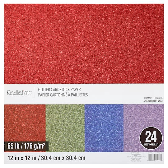 Buy the Glitter Primary 12" x 12" Cardstock Paper Pack by Recollections, 24 Sheets at Michaels. This glitter cardstock paper pack is a must-have in your craft kit. Includes assorted colors . 12" x 12"…