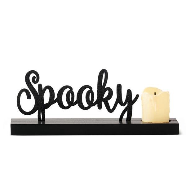 Glitter "spooky" Cutout Shelf Sitter Sign With Led Votive