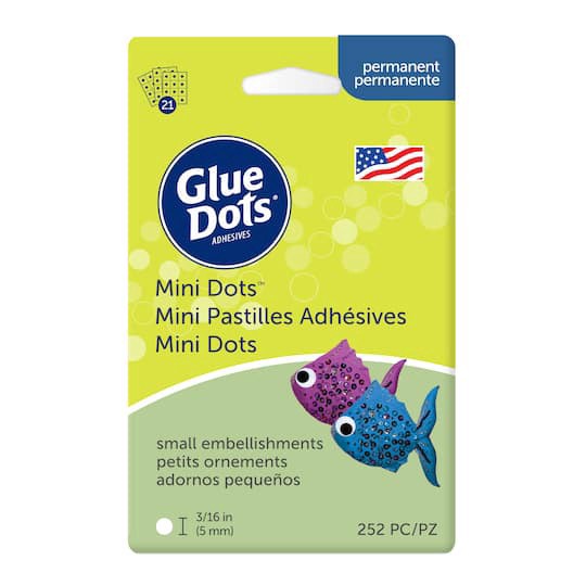 Get this Glue Dots Mini Dots at Michaels. This versatile adhesive is great for a multitude of craft, school, hobby and art projects. Clear. 3/16" (5 mm) diameter . 21 sheets, 252 adhesive dots total .…