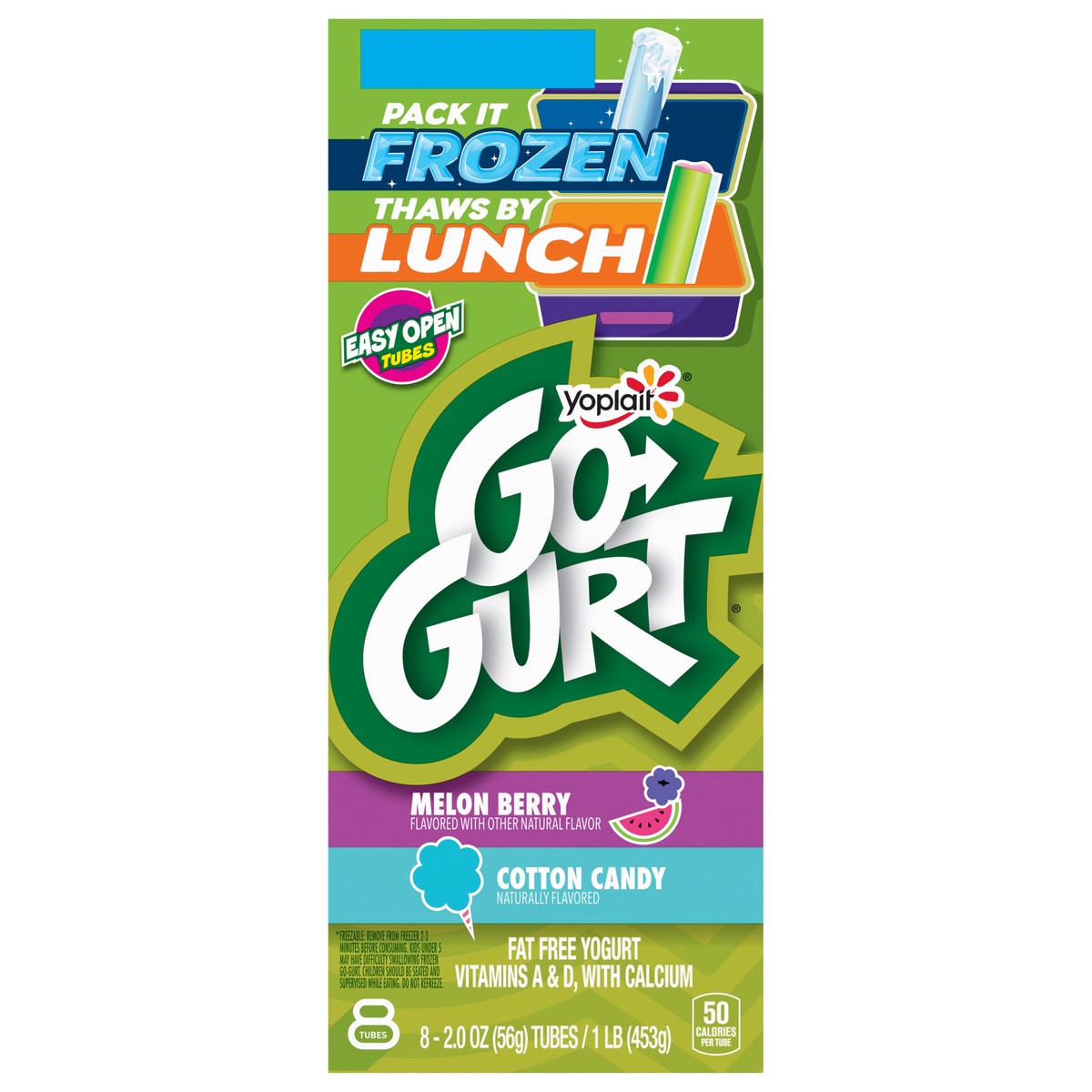 Go-GURT Melon Berry and Cotton Candy Kids Fat Free Yogurt Variety Pack, Gluten Free, 2 oz Yogurt Tubes (8 Count)