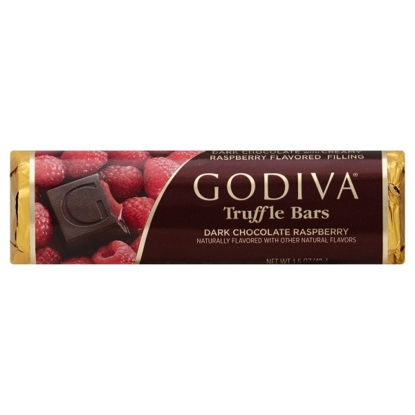 Dark chocolate with creamy raspberry flavored filling. Naturally flavored with other natural flavors. www.Godiva.com.