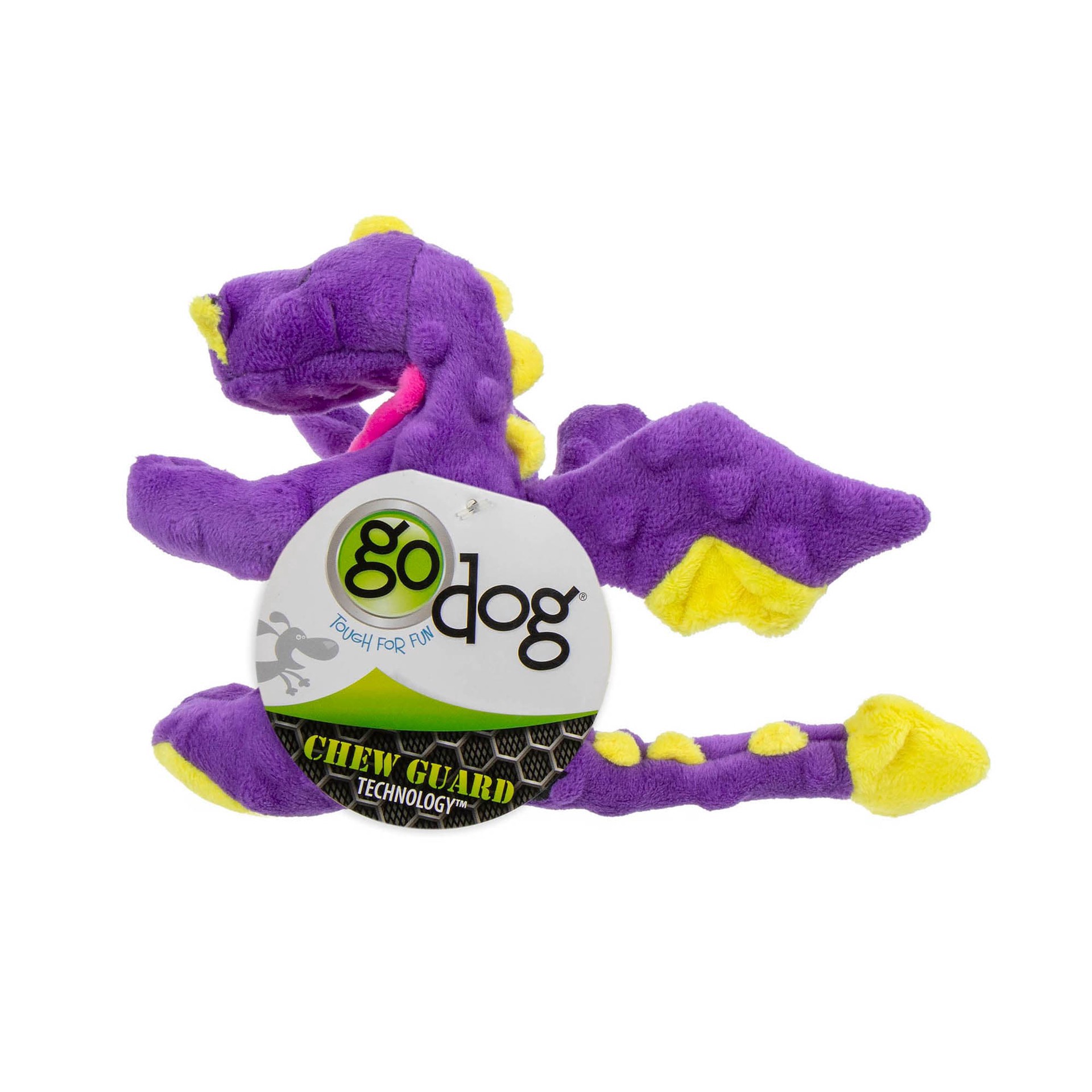 goDog Mini Purple Dragon with Chew Guard Technology Durable Plush Squeaker Dog Toy, Small