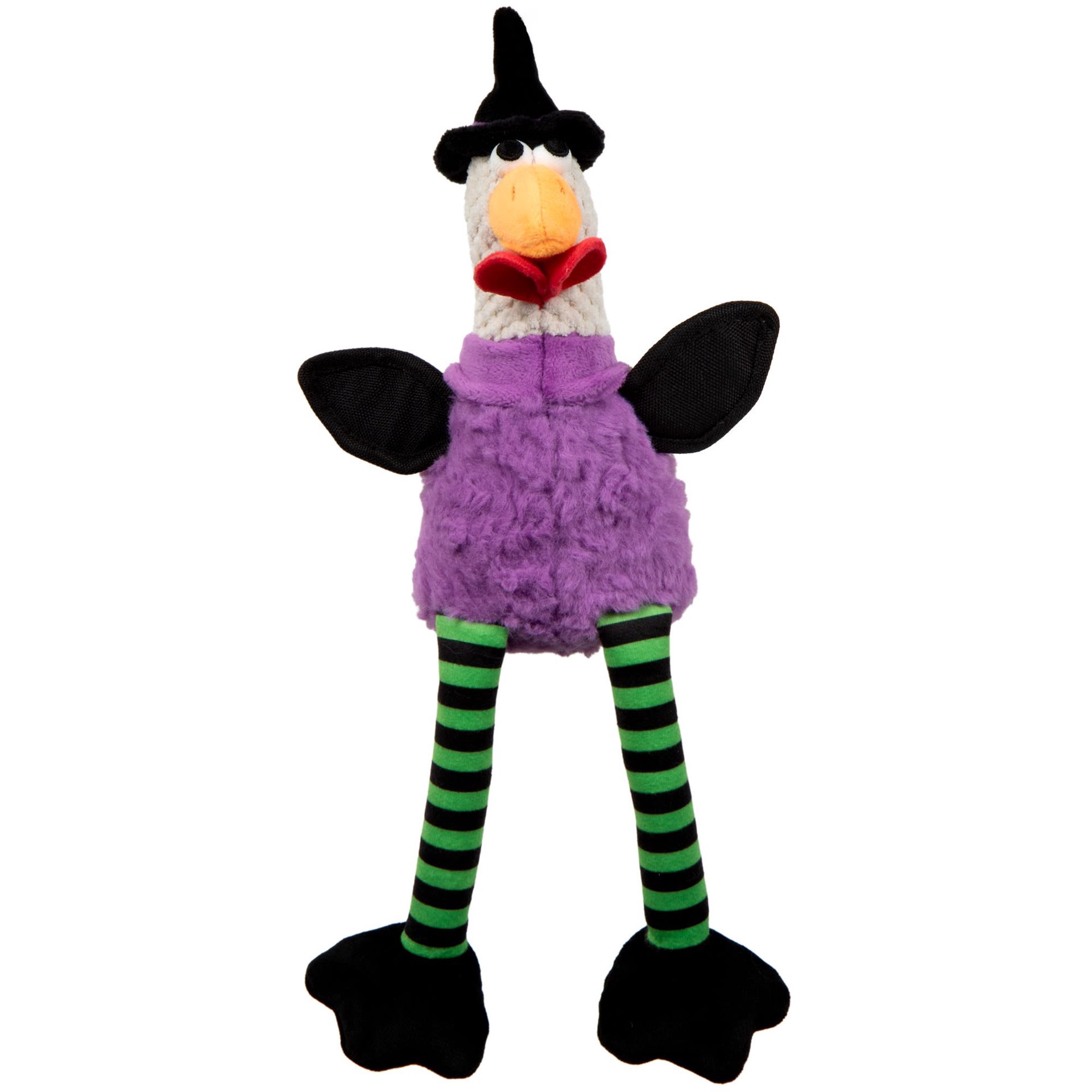goDog Purple Chew Guard Technology Farm Friends Skinny Rooster Witch Plush Dog Toy, Medium