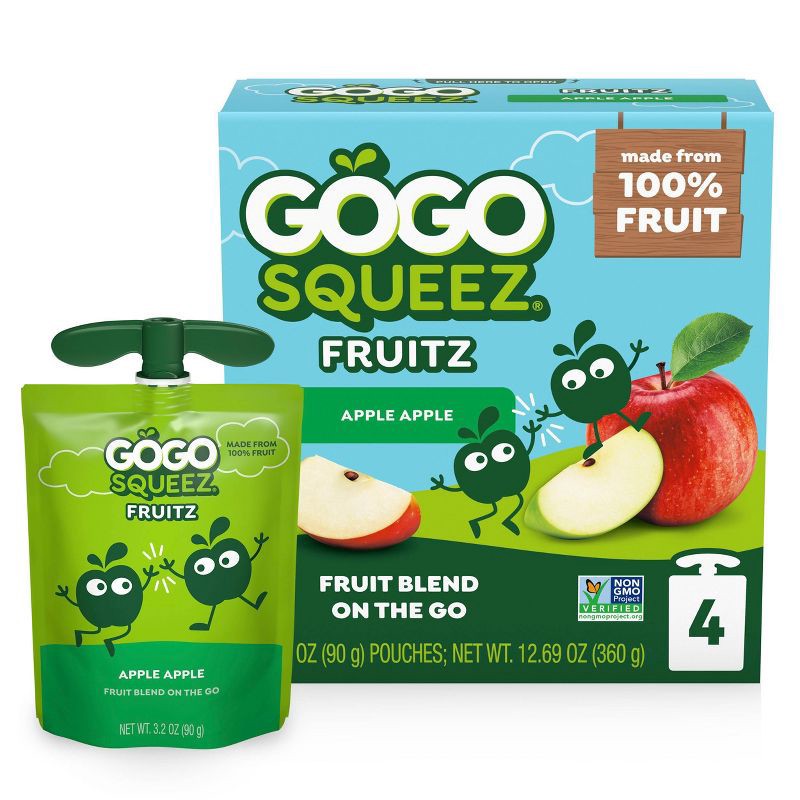 - INCLUDES 4 POUCHES – Comes with 1 box containing 4 Apple Apple pouches (3.2 oz each)"