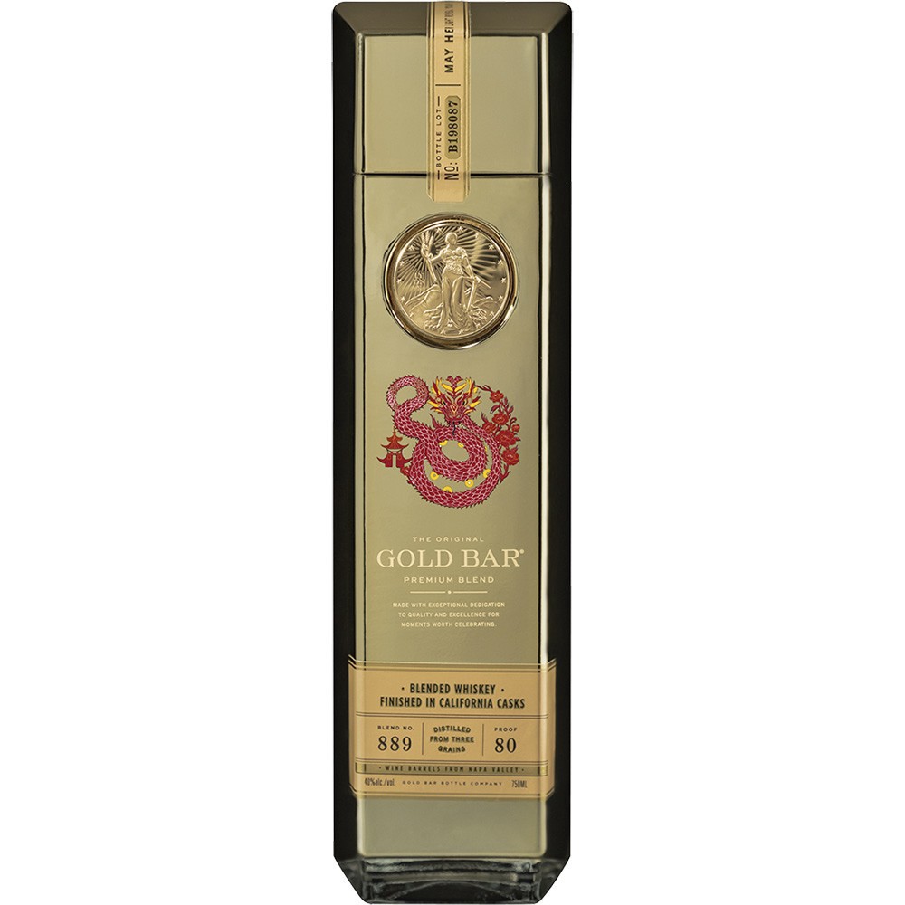 United States - 40% - 80 Proof Gold Bar Whiskey. Smooth and elegant. Celebrate the Year of the Snake with a Limited Edition Gold Bar Whiskey bottle and gift bag. Pre-dragon form - luxurious stage of s…