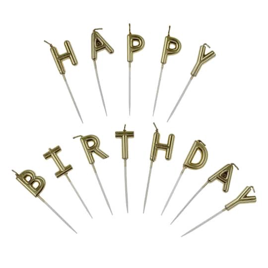 Find the Gold Birthday Candle Set by Celebrate It at Michaels. These candles spell out "Happy Birthday" and are perfect for cakes. Featuring bright colors, they're also guaranteed to lend any party a …