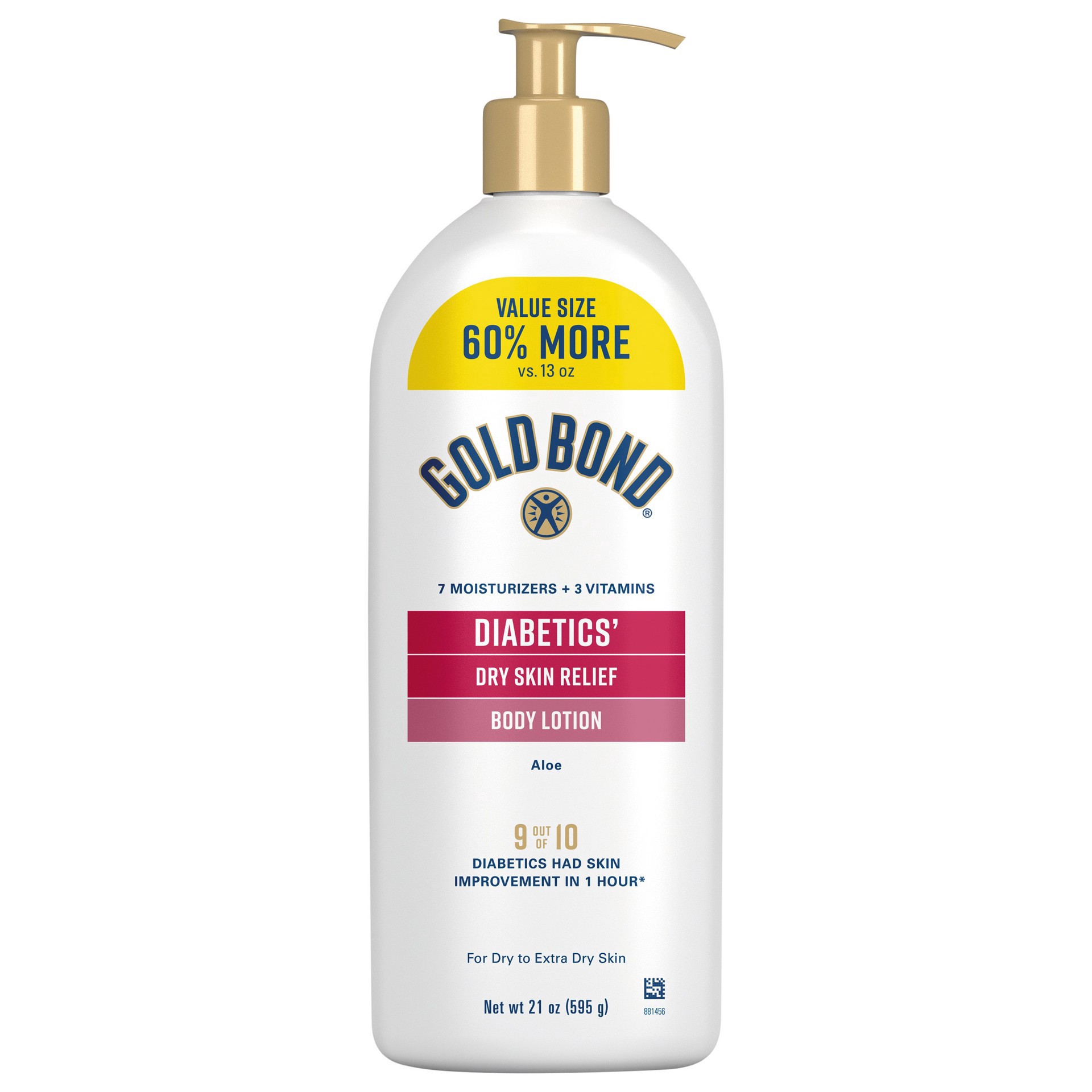 Gold Bond Diabetics' Dry Skin Relief Lotion combines seven intensive moisturizers, three vitamins, and aloe to nourish and moisturize dry, flaky skin. Nine out of 10 users saw noticeable skin improvem…