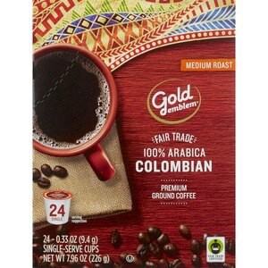 Gold Emblem Fair Trade Certified Colombian coffee, with its sweet notes of honey, toasted almond, and dark chocolate covered apricot, is a cup without compromise. Drink and feel good about a choice th…