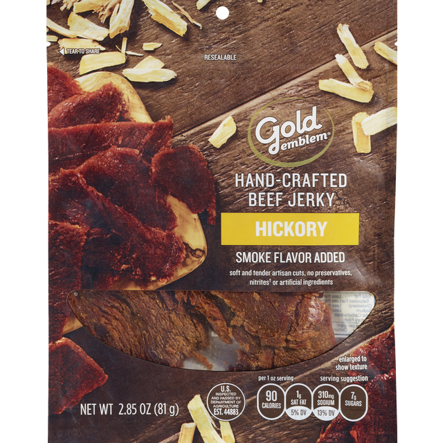 slide 1 of 1, Gold Emblem Jerky Beef Hand Crafted Hickory Flavor, 1 ct