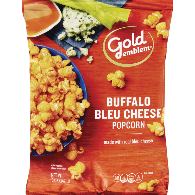 No Artificial Preservatives. No Artificial Flavors. No Artificial Sweeteners. No High Fructose Corn Syrup. Gold Emblem Buffalo Bleu Cheese Popcorn is a light and zesty snack you won't be able to put d…