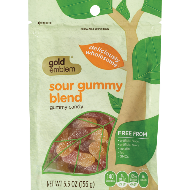 Gold Emblem sour gummy blend is a delightful alternative to traditional sour gummies because they're made with real fruit and are free from gelatin, fat, GMOs, dairy, and artificial flavors, colors, a…
