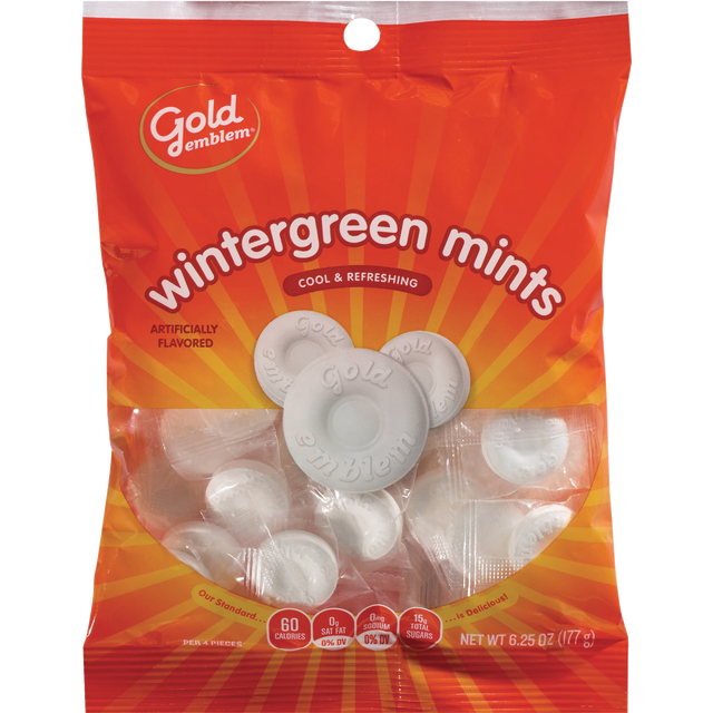 Gold Emblem Wintergreen Mints are a delicious way to freshen your breath anytime you need to. Cool and refreshing, they come in a favorite classic mint flavor. With Gold Emblem, you can turn any day i…