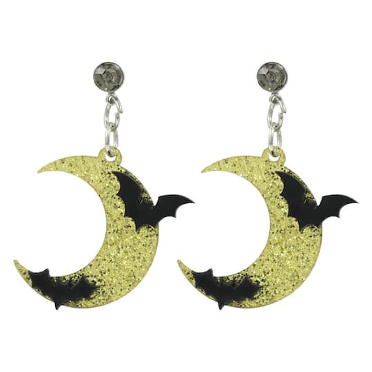 Buy the Gold Glitter Moon & Bat Earrings by Celebrate It at Michaels. Featuring a gold moon with a glitter finish and black bats, these accessories will be perfect to wear while trick-or-treating with…