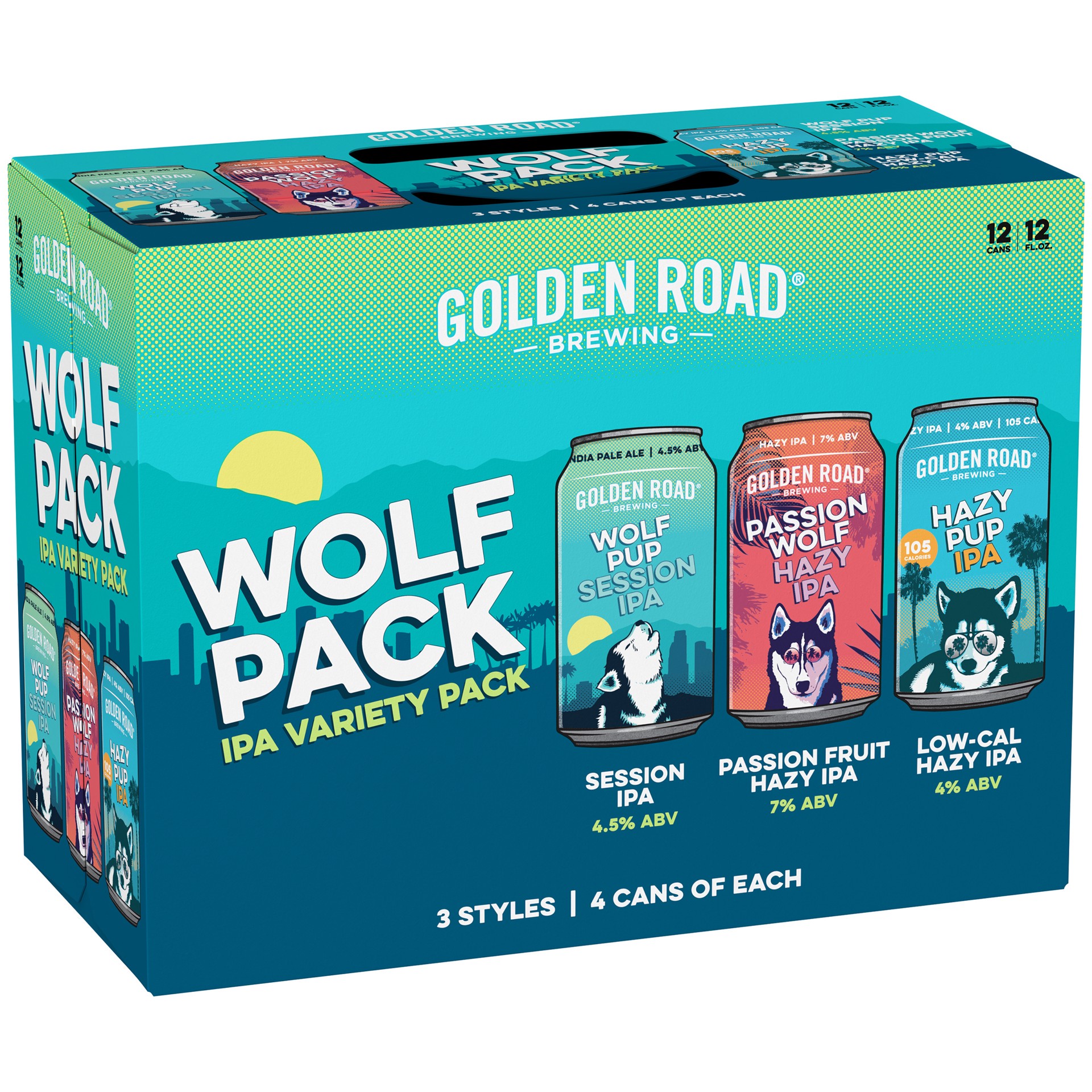 Golden Road Brewing Wolf Pup Session, Passion Wolf Hazy & Hazy Pup Wolf Pack IPA Variety Pack, 12 Pack 12 fl. oz. Cans