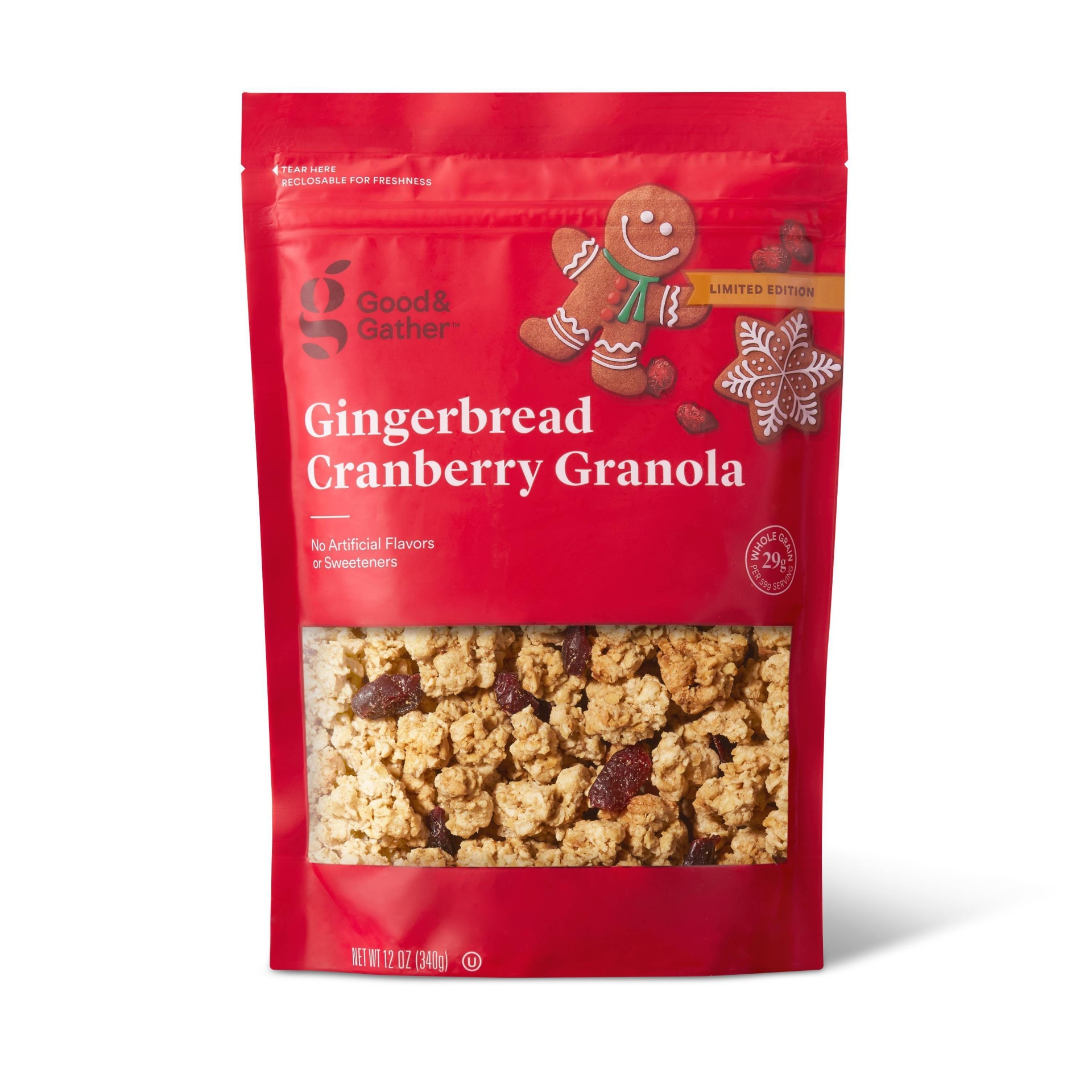 Turn your everyday breakfast or snacking occasions into a seasonal treat with Gingerbread Granola with Cranberries from Good & Gather. This limited edition seasonal granola flavor features the delicio…