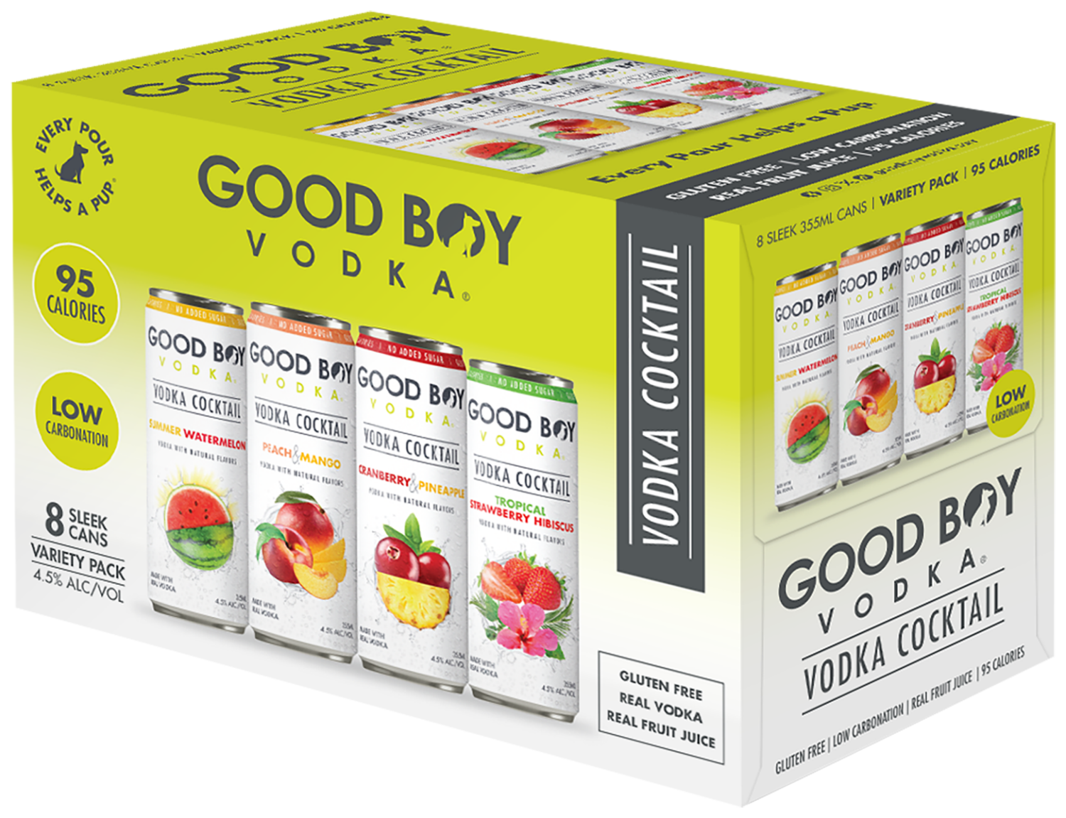 Made with our premium Good Boy Vodka, crisp seltzer, and natural fruit juices, our cocktails deliver a refreshingly smooth taste with just the right hint of sweetness. Sweetened naturally with Stevia …