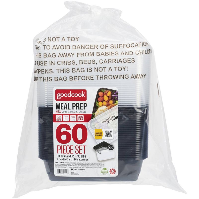 GoodCook Meal Prep 1 Compartment Rectangle Containers + Lids - 4Cups - 60 pcs/30ct - Black