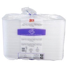 Containers, 3-Compartment, Large 9 x 9.1 x 3 Inch, Foam, White, Hinged, with Optional Venting, Polystyrene Package