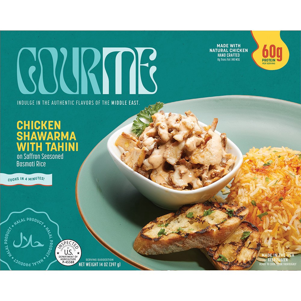 slide 2 of 2, Gourme Chicken Shawarma With Rice & Tahini Sauce, 14 oz