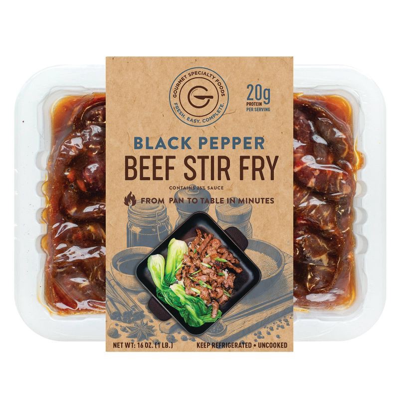 - Gourmet Specialty Foods Black Pepper Beef Stir Fry - Boneless