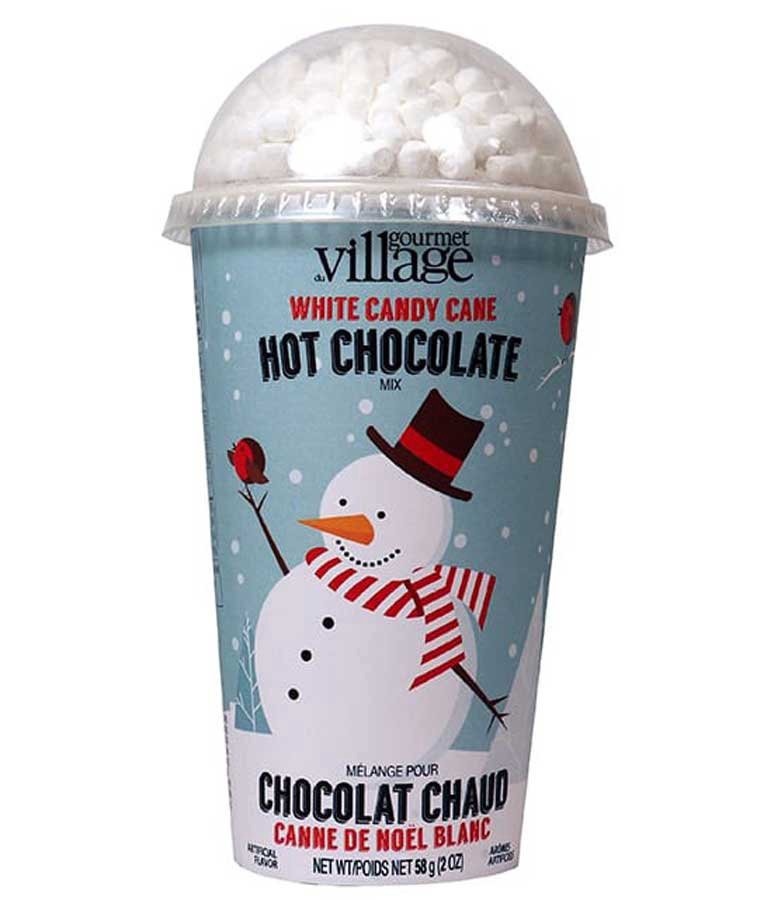 Snowman Gift cup filled with Candy Cane White Hot Chocolate blend. The packaging has been completely redesigned for this season. More decorative and more environmentally friendly. Recyclable cardboard…