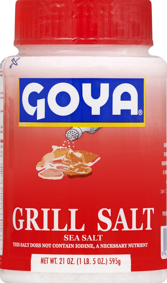 Sea salt. This salt does not contain iodine, a necessary nutrient. Salt crystals carefully selected to enhance flavor or marinate your meats for grill or BBQ. www.goya.com. Product of Colombia.