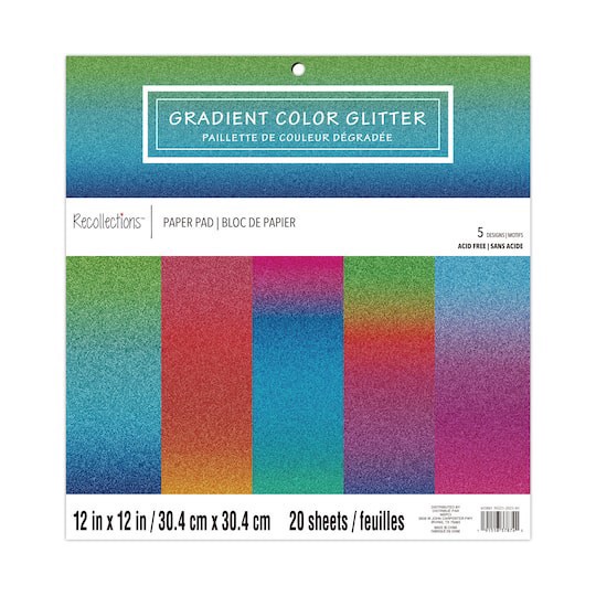 Shop for the Gradient Color Glitter Paper Pad by Recollections, 12" x 12" at Michaels. Add depth and dimension to your next project with this paper. Includes assorted colors . 12" x 12" (30.4cm x 30.4…