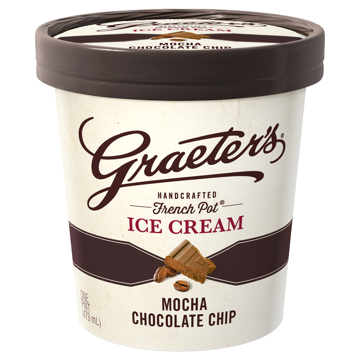 Graeter's Handcrafted French Pot Mocha Chocolate Chip Ice Cream. One pint (473 ml).