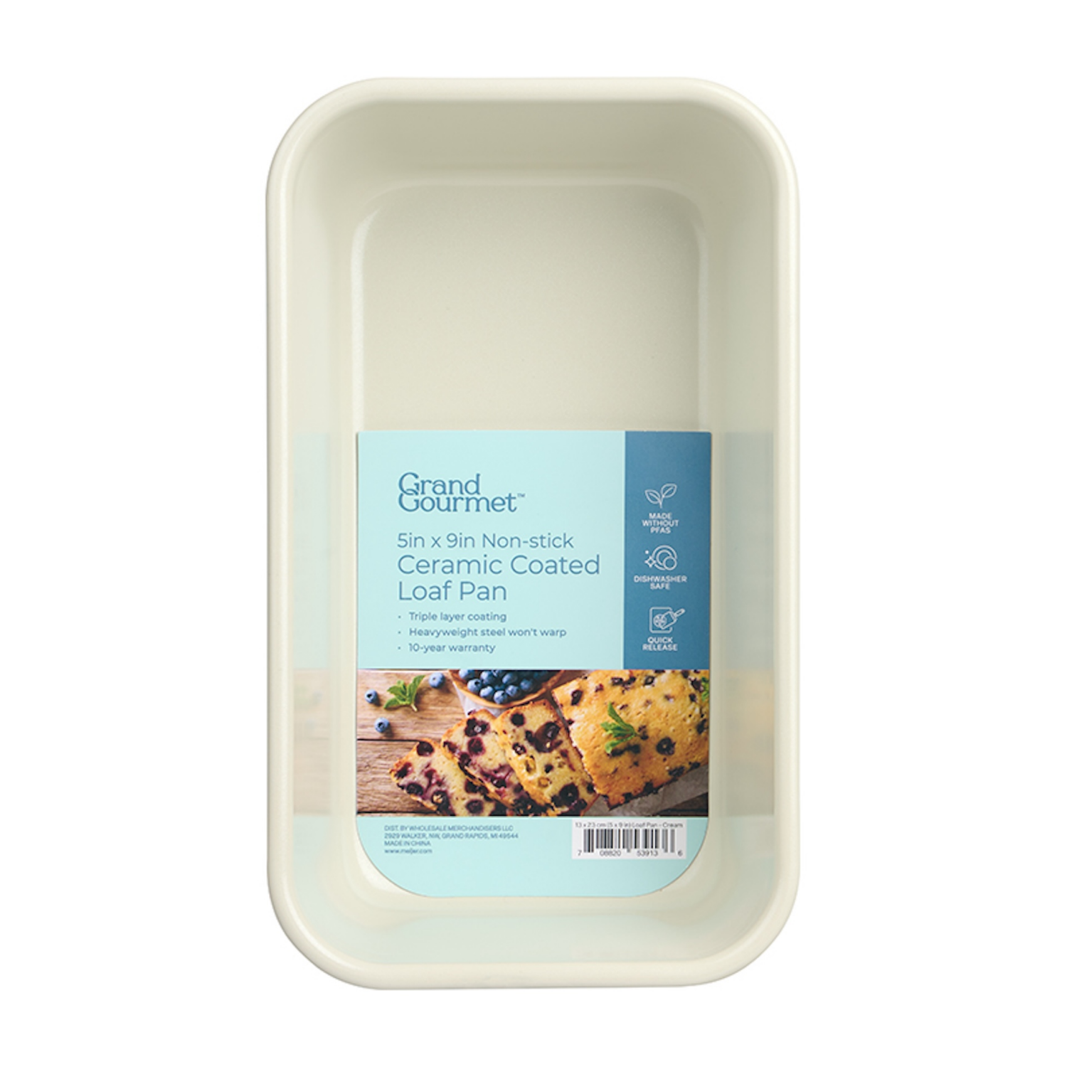 Grand Gourmet Non-Stick Ceramic Coated 5in x 9in Loaf Pan (Cream)