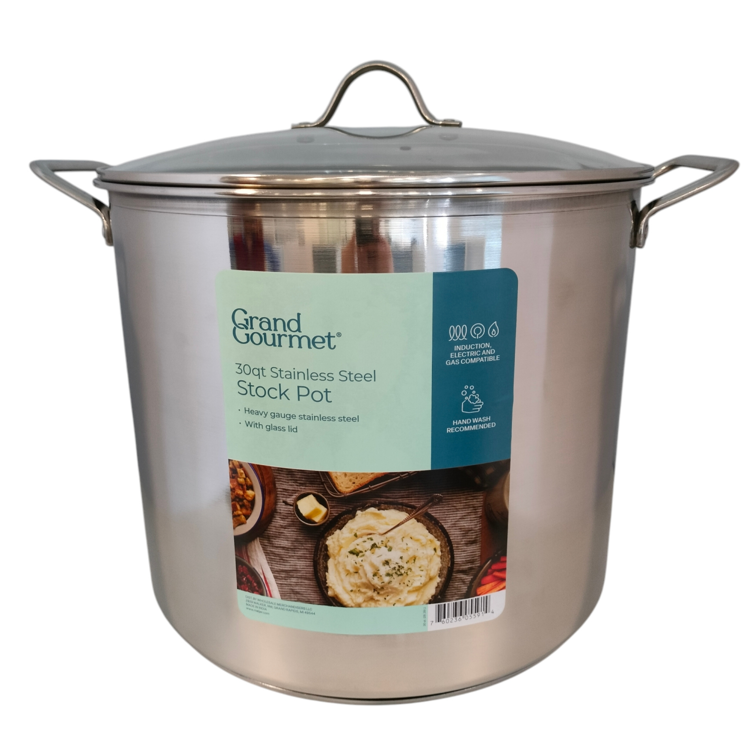 Grand Gourmet Stainless Steel Stock Pot with Glass Lid
