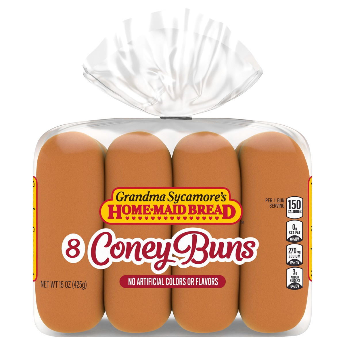 Grandma Sycamore's Coney Buns, 8 count, White Hot Dog Buns, 15 oz Bag