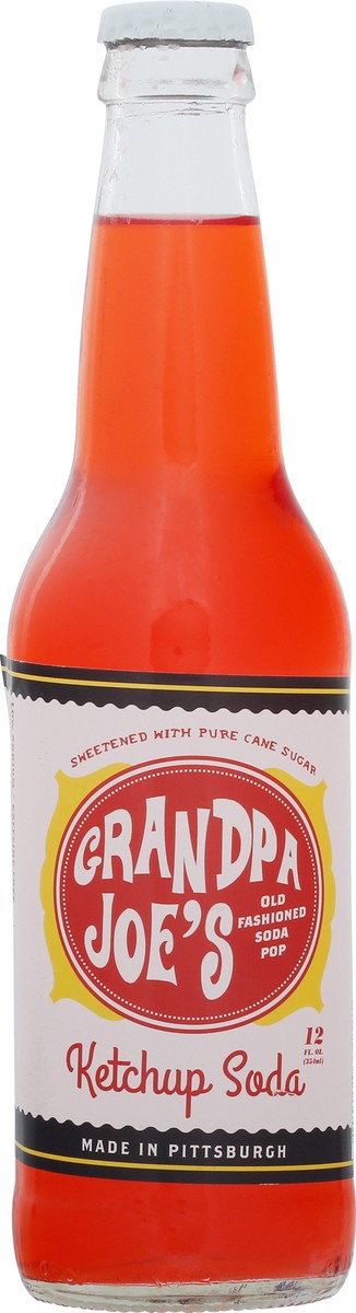 Contains: Filtered Carbonated Water, Cane Sugar, Natural and Artificial Ketchup Flavor, Citric Acid, Sodium Benzonate (a Preservative), Color Red 40.