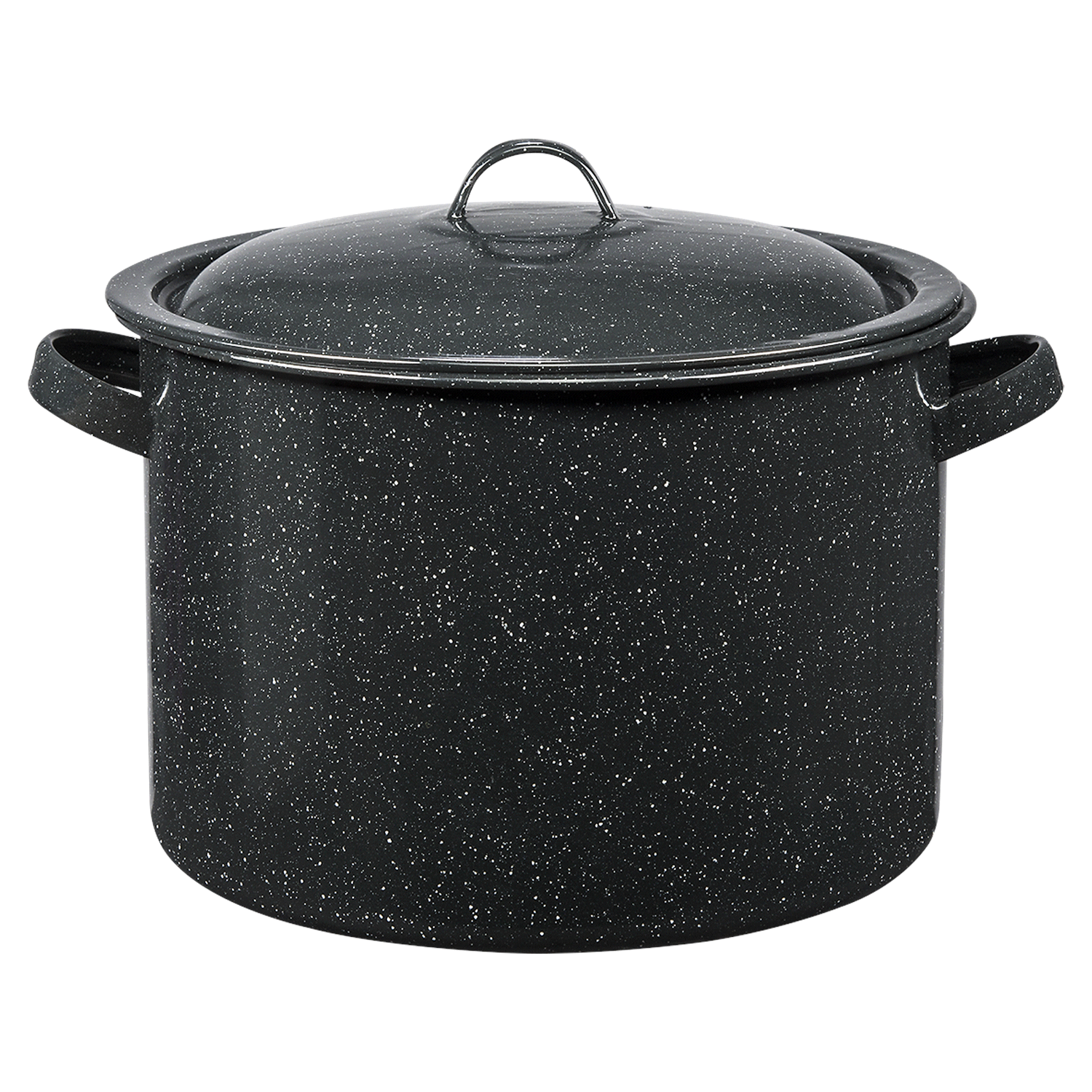 GraniteWare has a carbon steel core for strength, conductivity and heat distribution. Porcelain is fused to the steel at 1,500F producing a nonporous, inert glass surface that is naturally nonstick. G…
