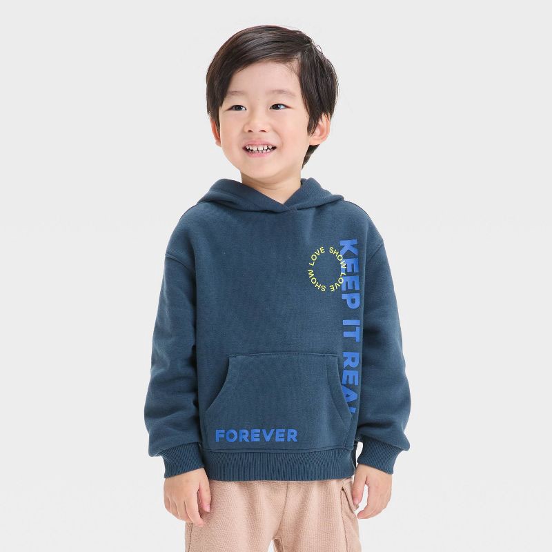 slide 1 of 4, Grayson Mini Toddler Boys' Stay Sunny Hooded Fleece Sweatshirt - Navy Blue 5T: Kangaroo Pocket, Typography Pattern, 1 ct