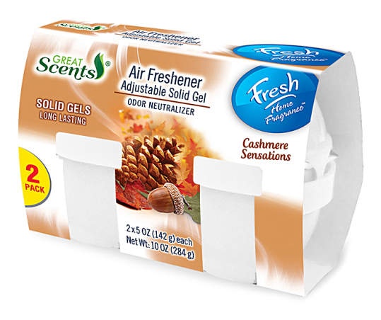 Bring the aroma of autumn into your home with Cashmere Sensations from Great Scents. These adjustable solid gel air fresheners are long lasting and perfect for placing in your bathroom, living room, b…