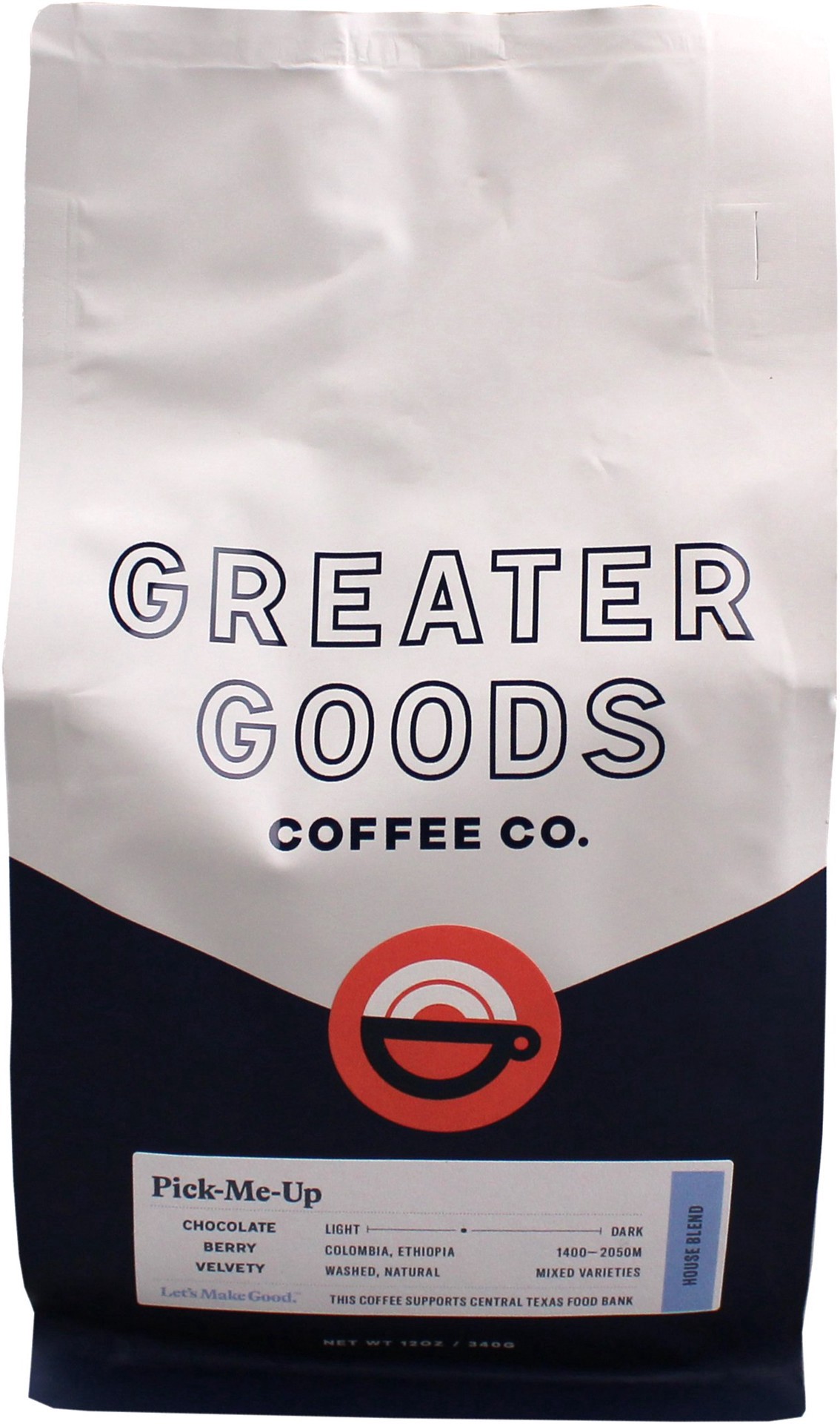 Get introduced to your new favorite roaster with Greater Goods signature house blend. Crafted with sustainably sourced Ethiopian and Colombian coffees, Pick-Me-Up is a little bit fruity, a lotta bit c…