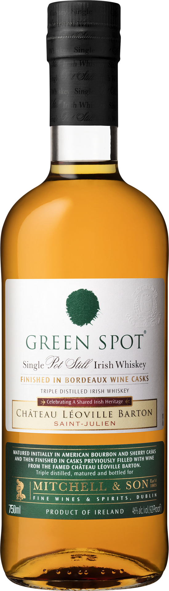 Green Spot Château Léoville Barton has initially been matured in traditional sherry and bourbon casks, then finished in French oak wine casks from the renowned Château Léoville Barton, Bordeaux.