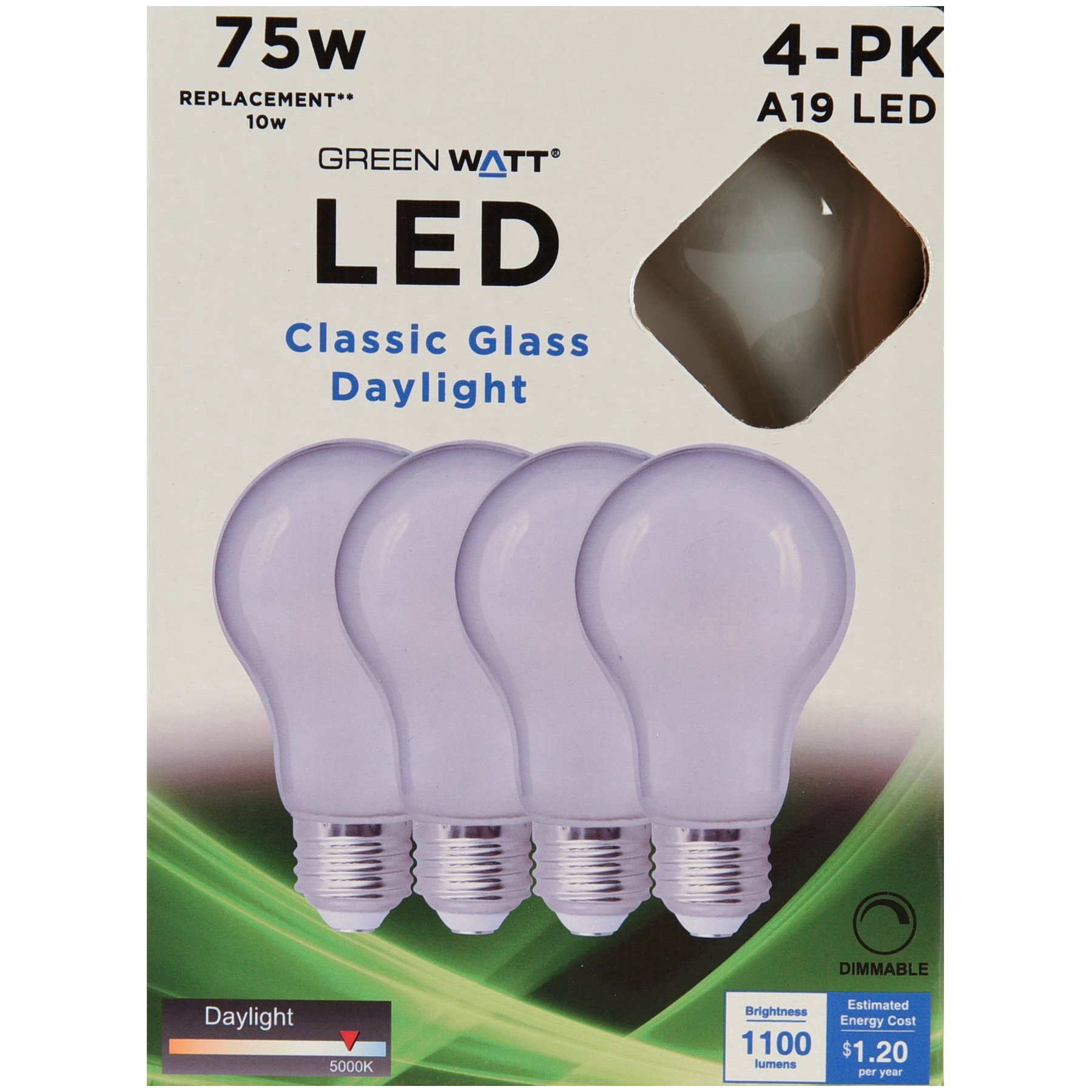 Green Watt A19 75-Watt Frosted LED Light Bulbs - Daylight, 4pk