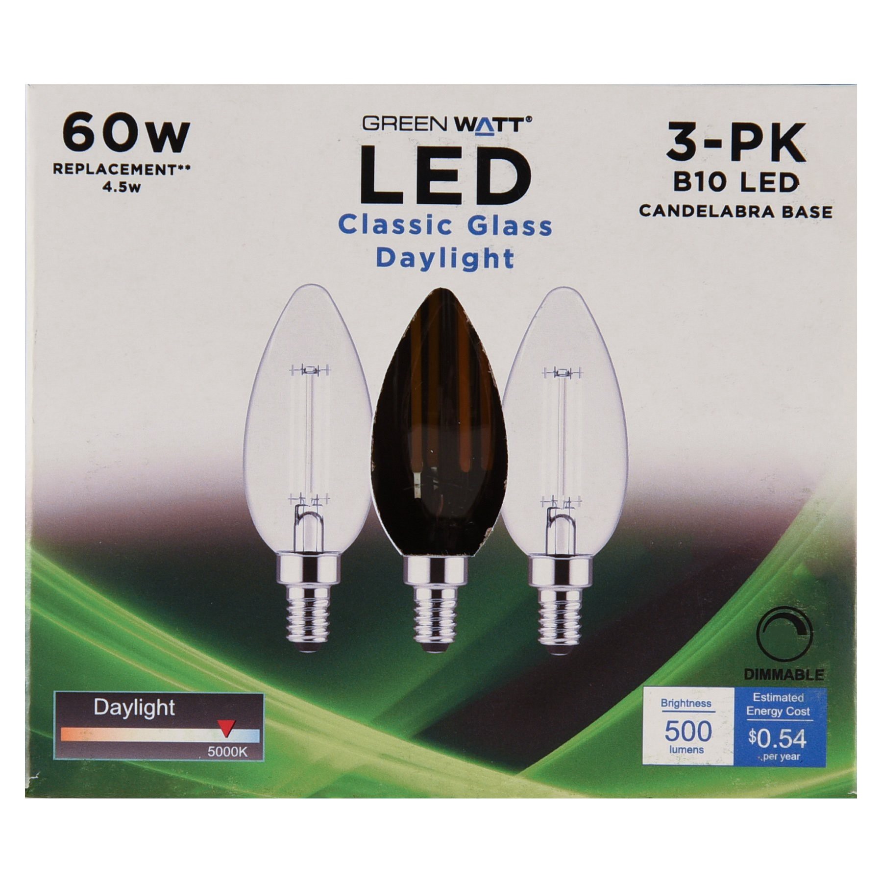 Green Watt B10 60-Watt Clear E12 LED Light Bulbs - Daylight, 3pk