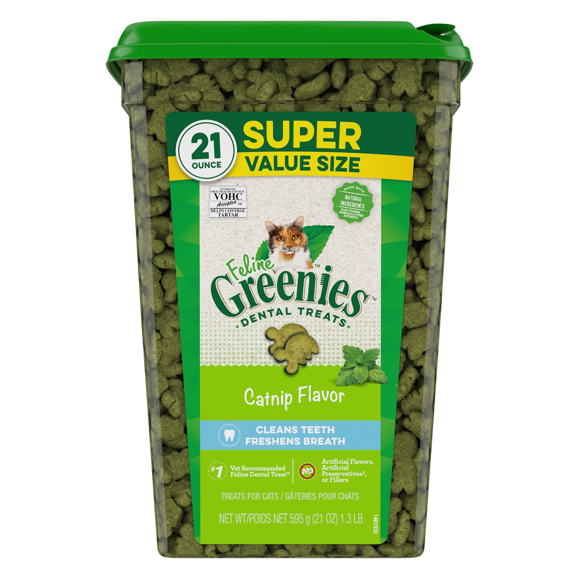 Calories Content (calculated): 3480 kcal ME/kg: 1.4 kcal ME/treat. Feline Greenies catnip flavor dental treats are formulated to meet the nutritional levels established by the AAFCO Cat Food Nutrient …