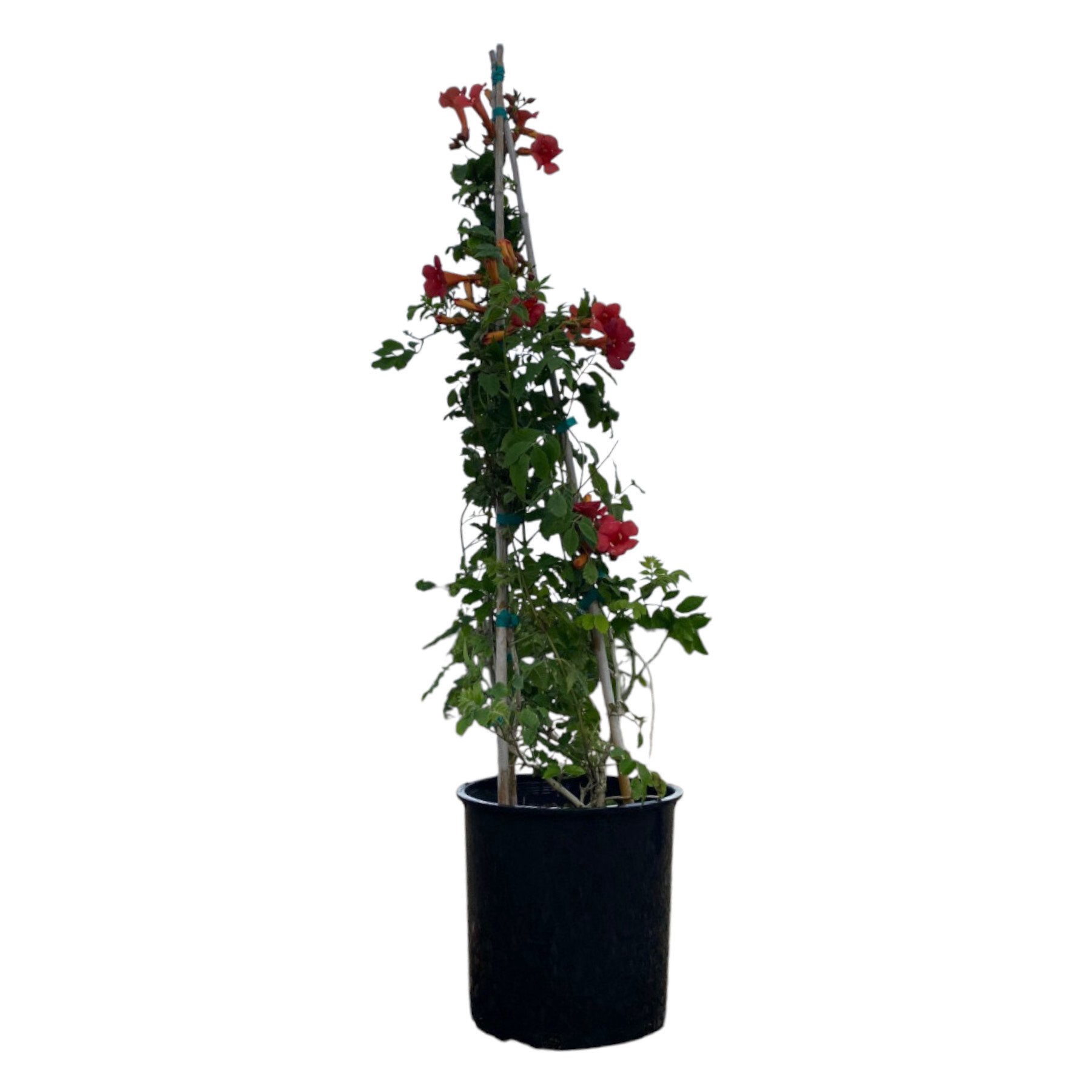 A well-mannered, deciduous vine displaying clusters of large, intense rose-colored flowers that bloom from spring through fall. Will grow 10 to 15 feet when supported. Perfect on trellises and fences.…