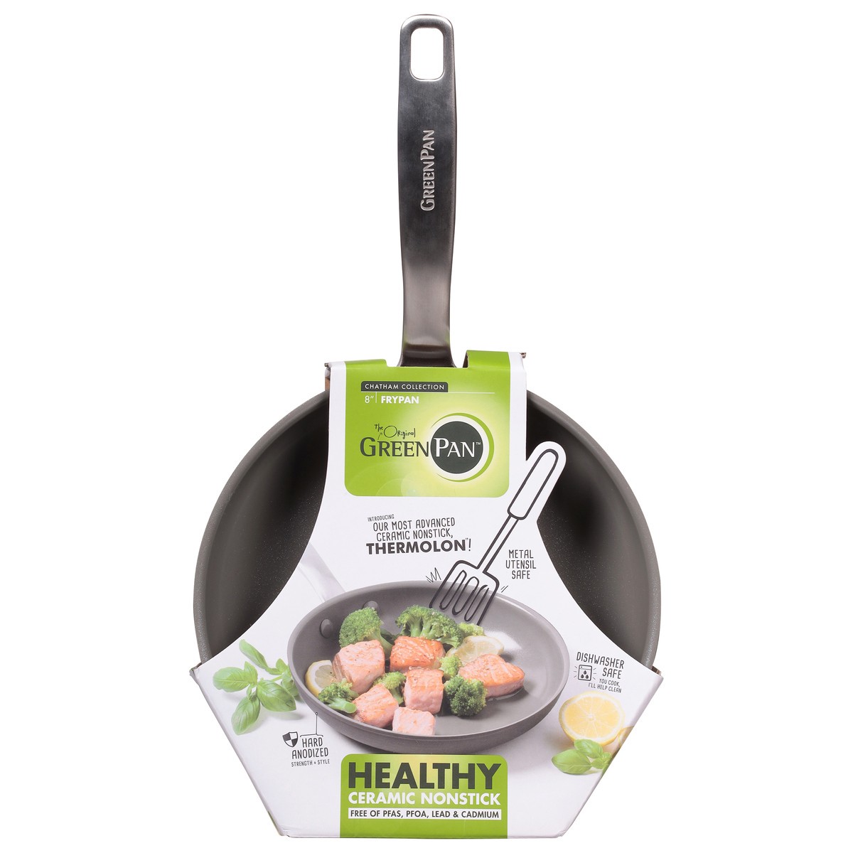 The original green pan. Introducing our most advanced ceramic nonstick, thermolon! Metal utensil safe. Hard anodized strength + style. Dishwasher safe you cook, I'll help clean. Healthy ceramic nonstiā¦