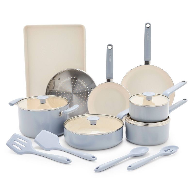 GreenPan Rio Advanced 16pc Ceramic Nonstick Cookware Set Stardew Blue