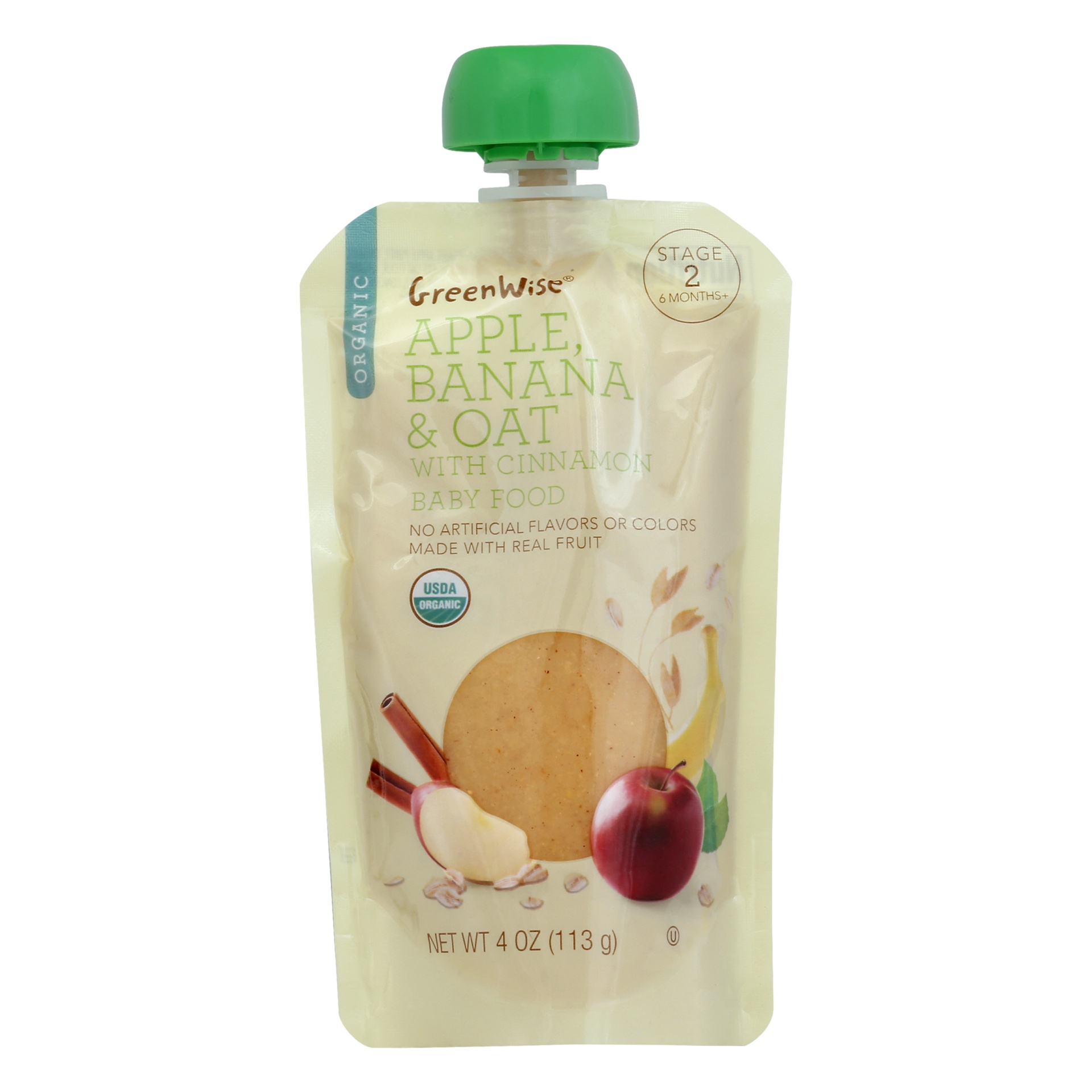 GreenWise Organic Baby Food, Apple, Banana & Oat, Stage 2