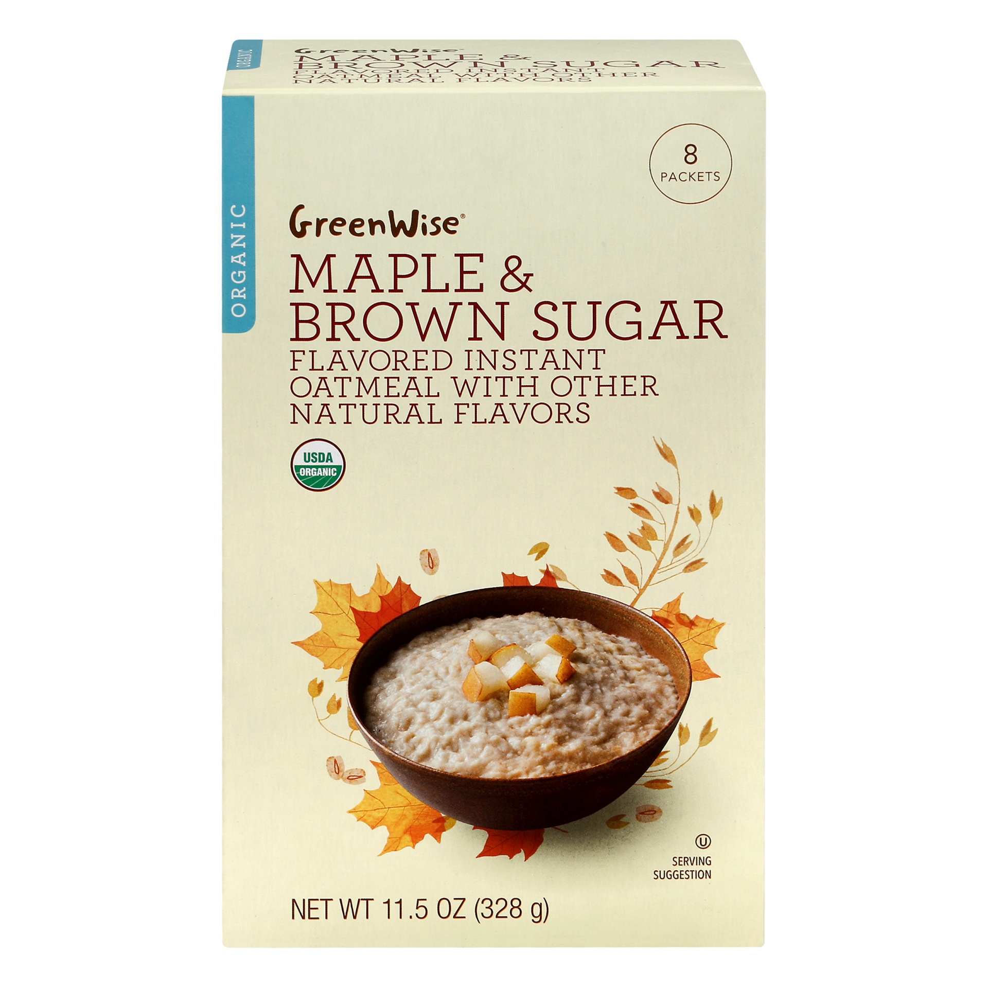 GreenWise Organic Maple & Brown Sugar Instant Oatmeal, Cozy organic breakfast. GreenWise Organic Maple & Brown Sugar Oatmeal is made with whole grains and natural sweeteners. A warm, comforting start …