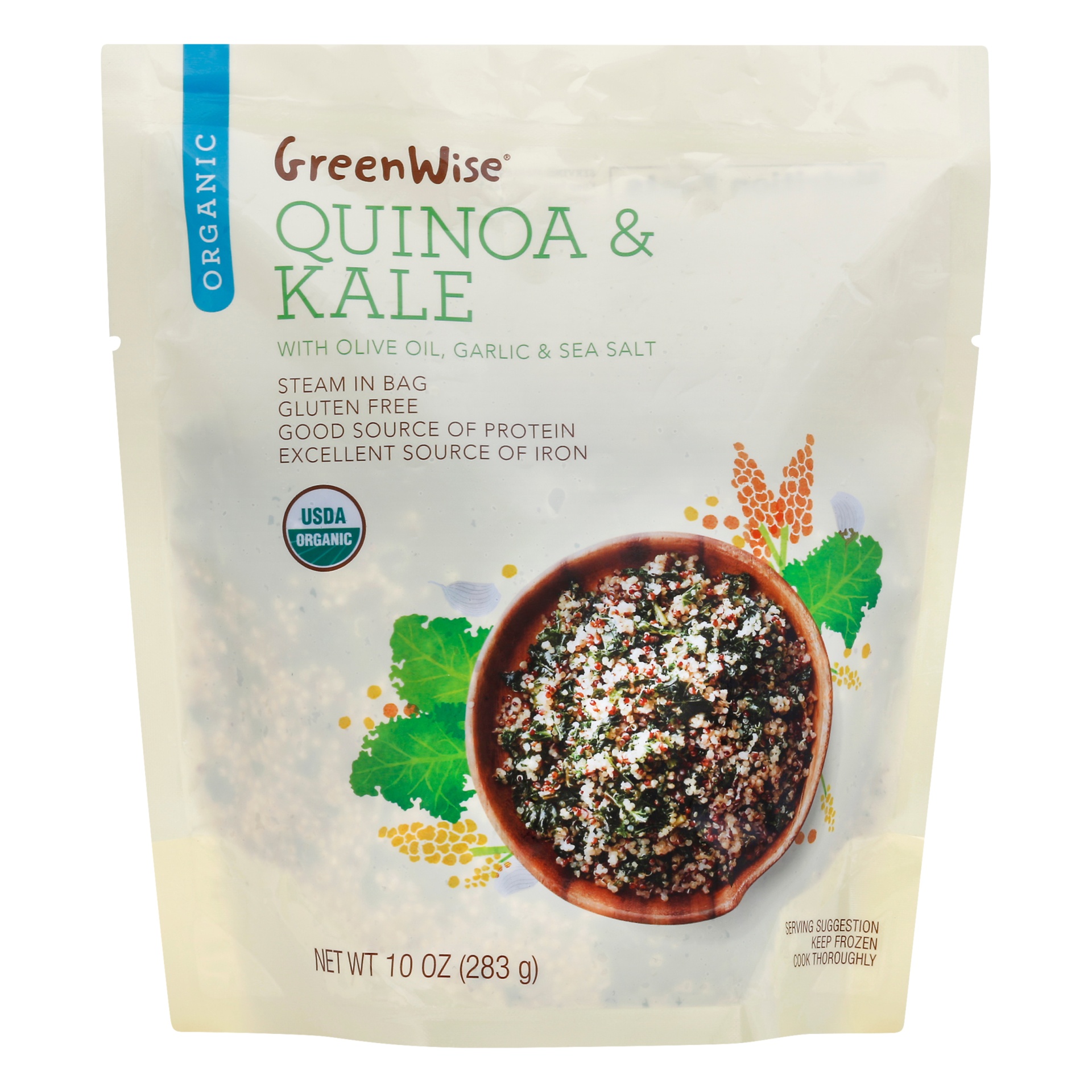 GreenWise Organic Quinoa & Kale, A superfood side in minutes. GreenWise Organic Quinoa & Kale combines fluffy, nutty quinoa with tender chopped kale. Seasoned lightly, it's a healthy, high-fiber base …