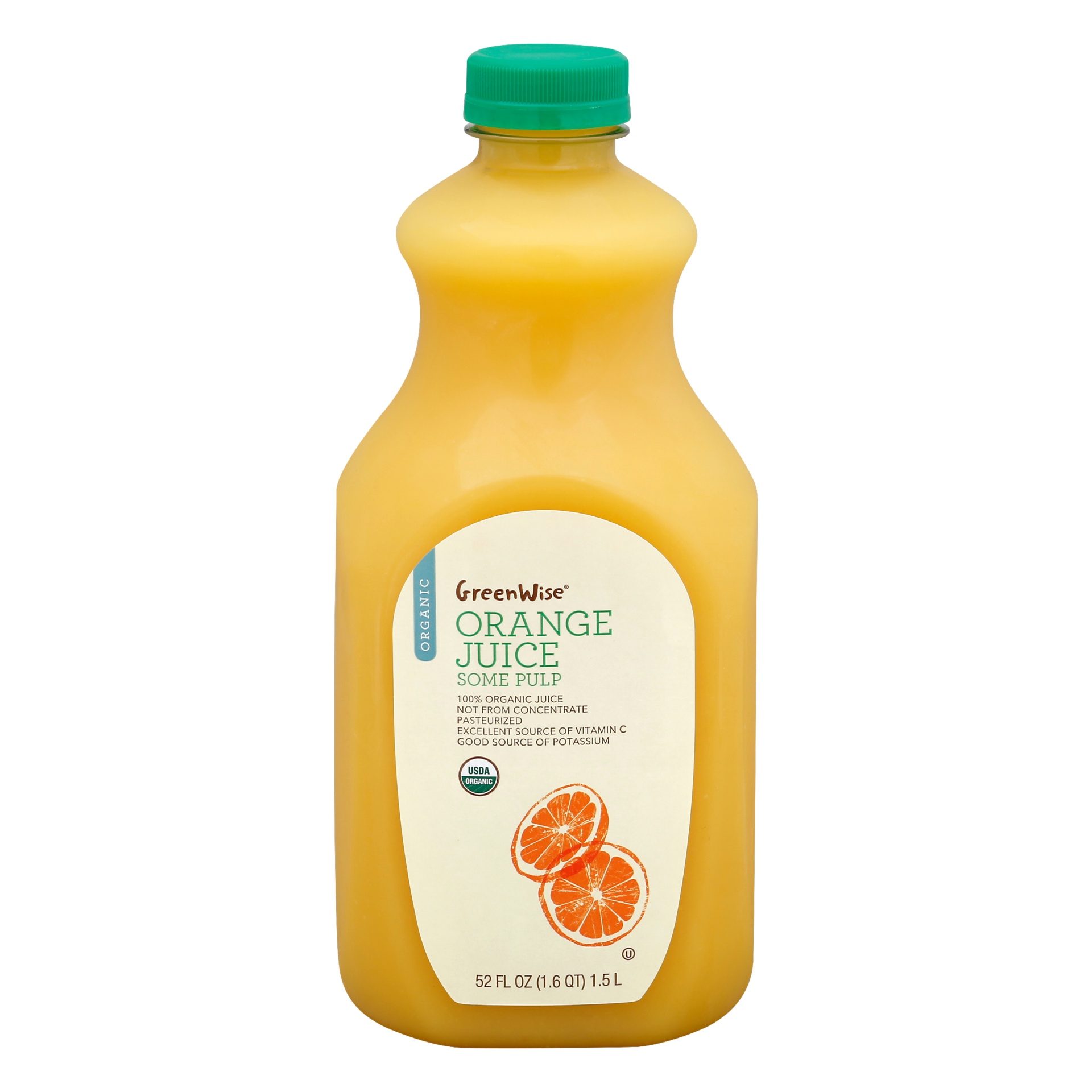 GreenWise Some Pulp Organic Orange Juice - 52 oz, Juicy texture. GreenWise Organic Some Pulp Orange Juice balances smooth juice with a touch of pulp for a fresh-squeezed taste. Certified organic and d…