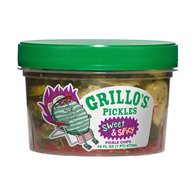 Sweet meets heat! Grillo's Sweet & Spicy Pickle Chips deliver bold flavor with a little fire. Crinkle-cut for maximum crunch with bell pepper, onion, jalapeños, and red pepper flakes. Our Sweet and Sp…