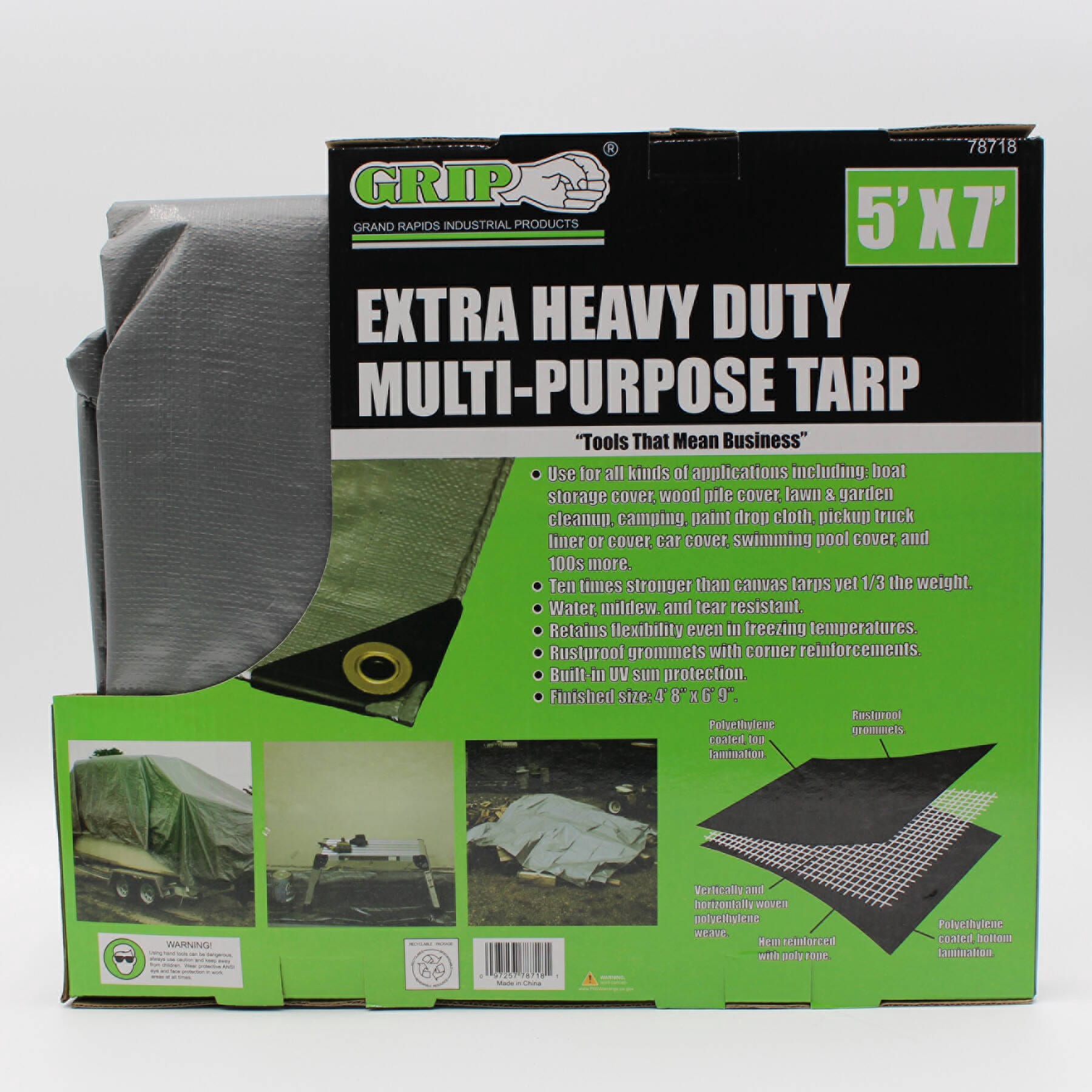 slide 4 of 4, Grip-on Tools 5-ft x 7-ft Gray Water resistant Standard Polyethylene 14-mil Tarp, 1 ct