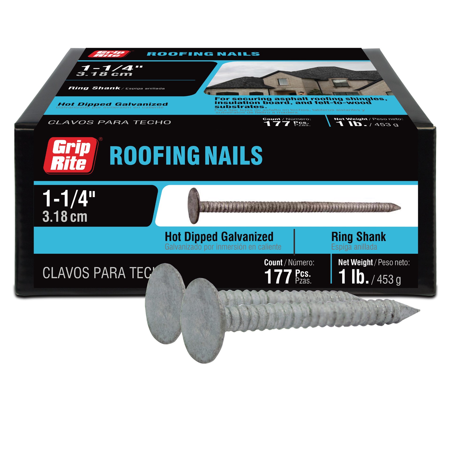 Grip-Rite 1-1/4-in Ring Shank Hot-dipped galvanized Roofing Nails 177 -Per Box